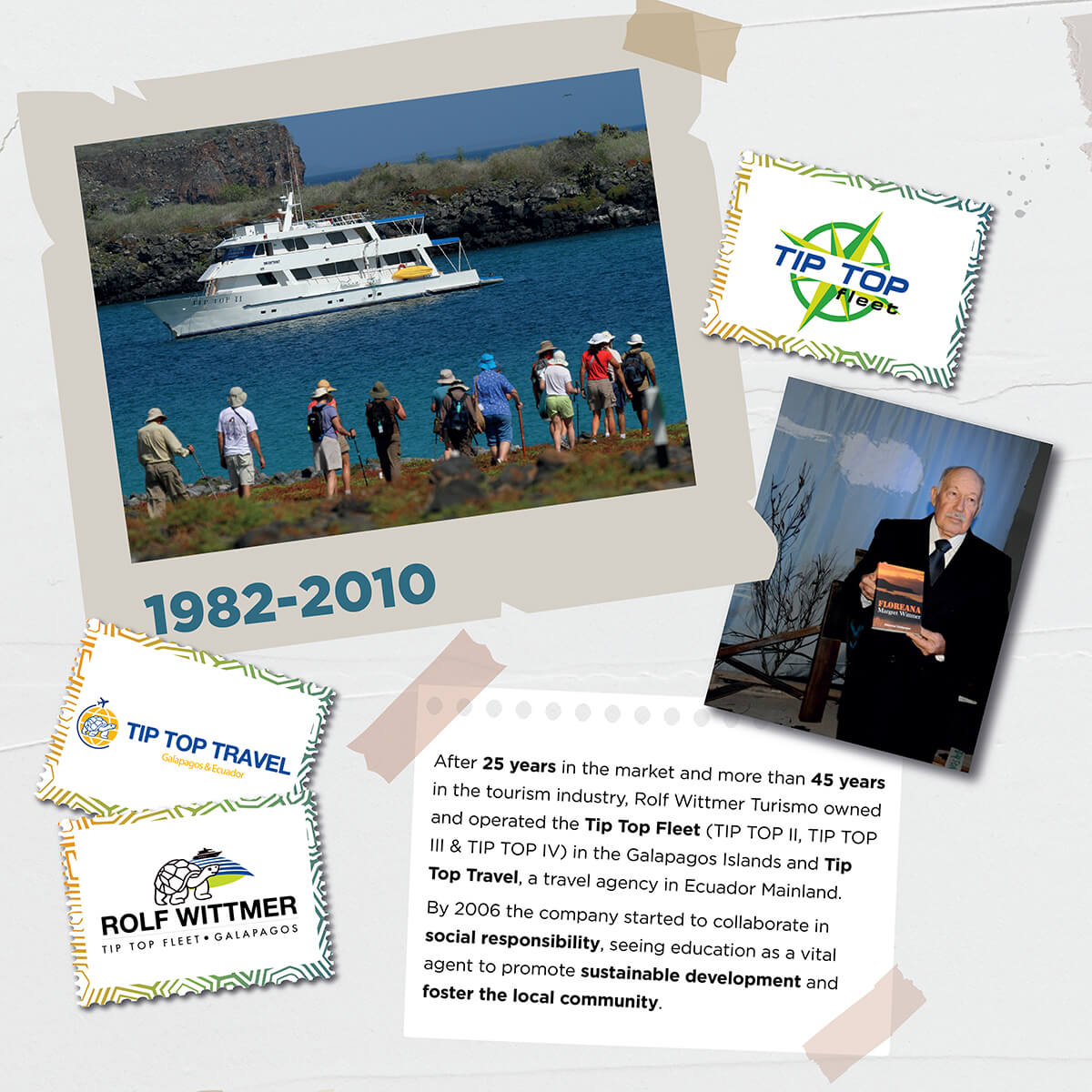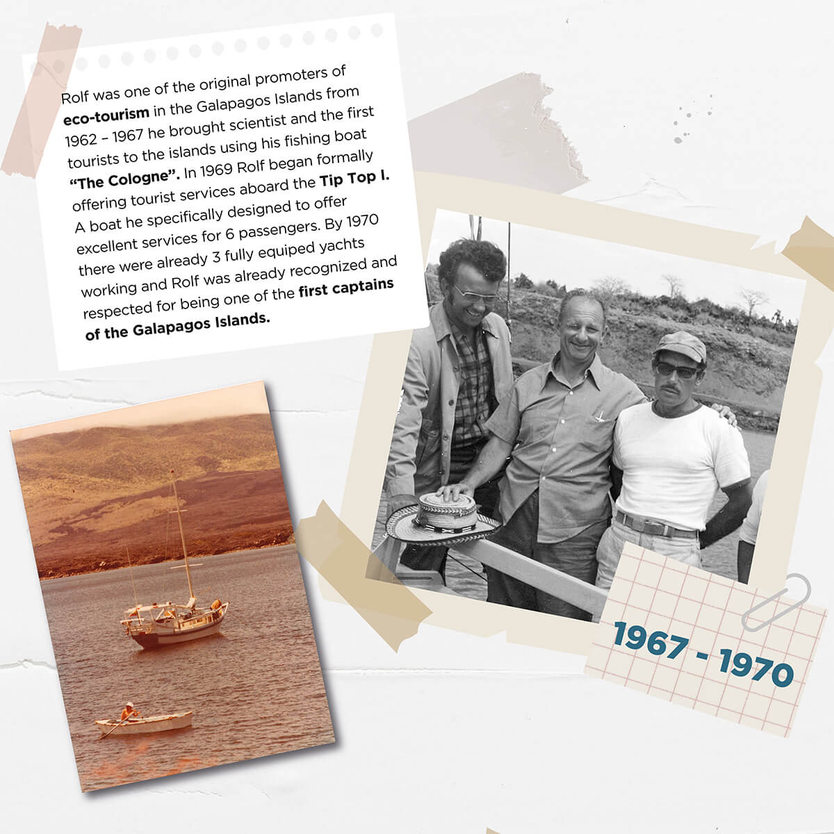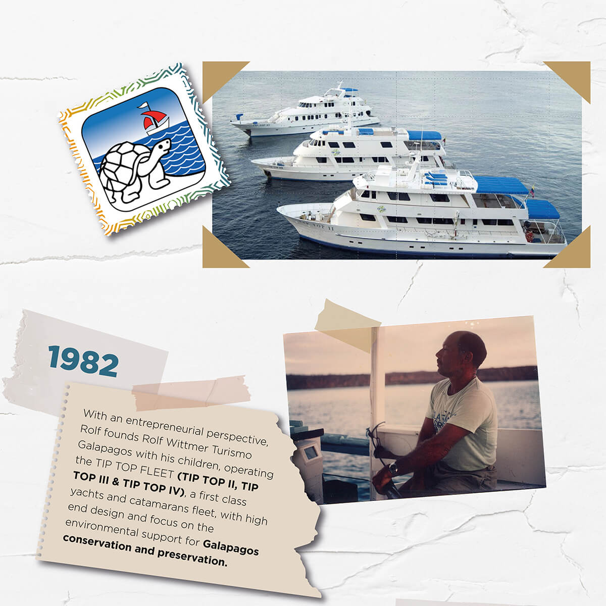 In November 1969, Capitan Rolf Wittmer began to offer formal tourism activities on board a yacht he specially designed and built to accommodate 6 passengers: the motor yacht “Tip Top I”. This was the start of a business which grew very rapidly mainly due to the excellent services and personal attention that Rolf Wittmer was known to provide.